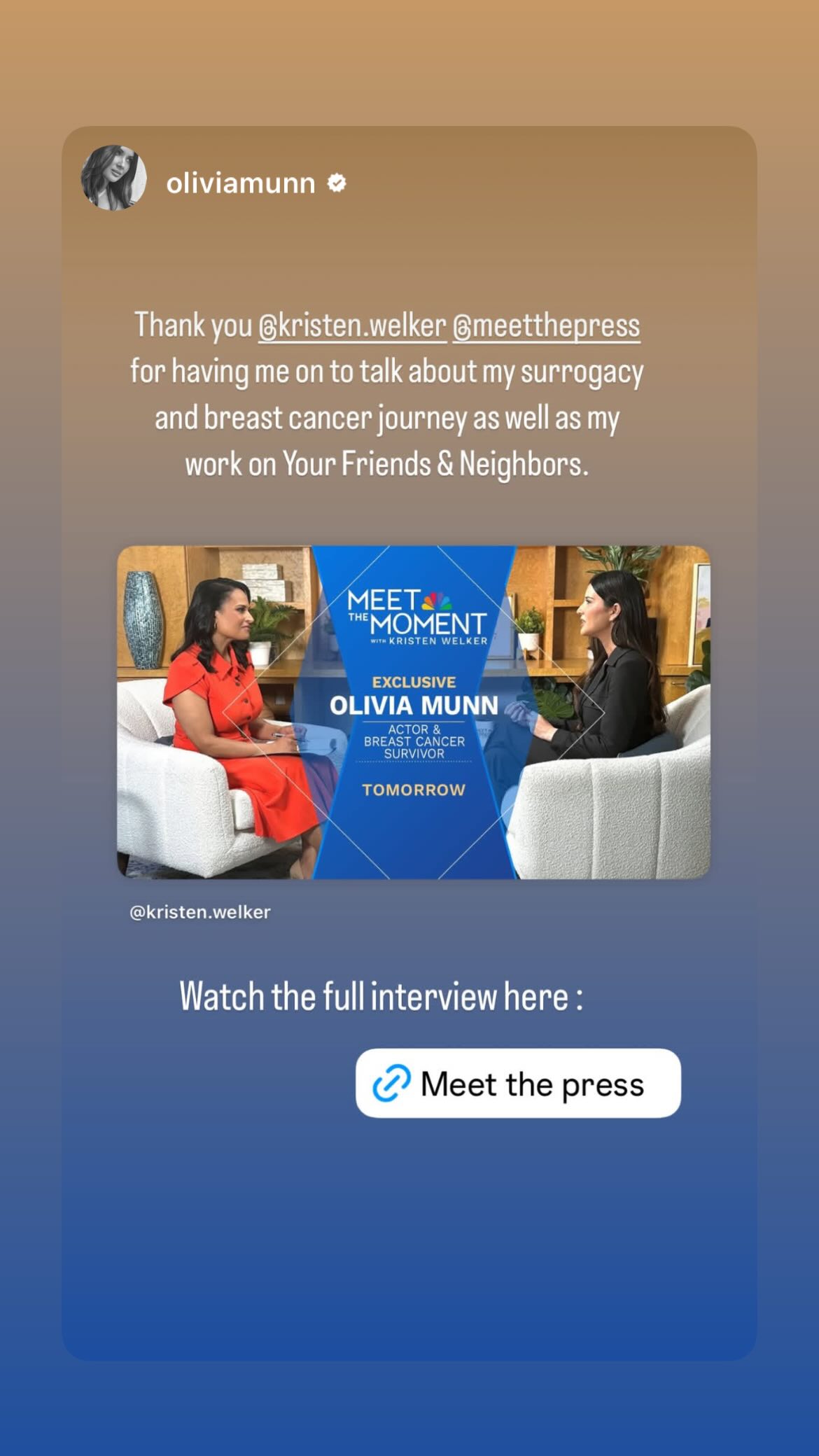 Olivia Munn on Meet the Moment with Kristen Welker June 8, 2025.