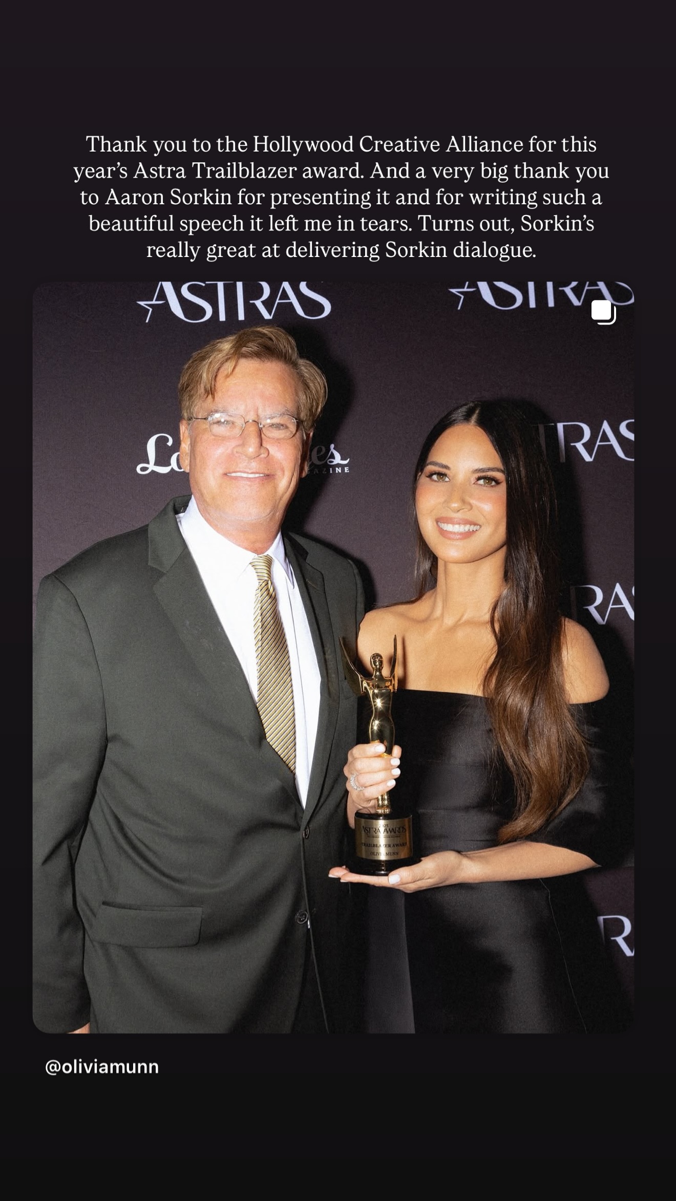 Olivia Munn attending the 2025 Astra TV Awards in Los Angeles, June 10, 2025.